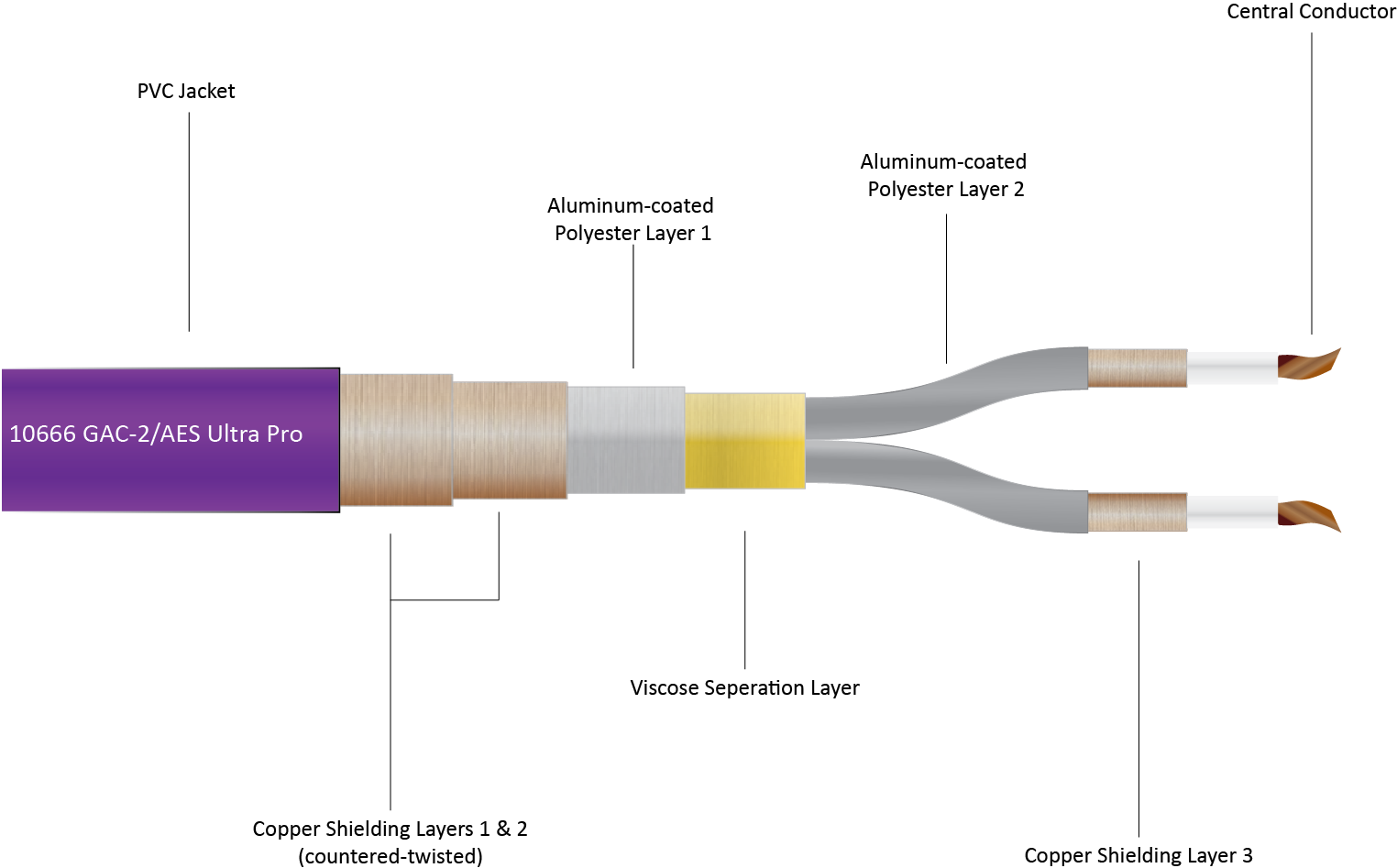 Durch die stabile Impedanz von 110 Ohm eignet sich dieses Kabel auch für symmetrische digitale Audiosignale im AES-EBU Format.