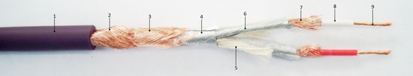 Symmetrisches hochflexibles Audiokabel für Mikrofonleitungen und anspruchsvolle Verbindungen bei Installationen mit analogen Audiosignalen.Kompromisslose Abschirmung! Mehr kann man nicht machen! Jeder Leiter (9) wird nach der Isolation mit einem Reussenschirm (100% abdeckende Kupferdrähte) geschirmt, darüber wird eine leitende Stoffschicht (Aluminiumbedampft) gelegt. 2 solcher Leiter werden dann mit Füllmaterial präzise verseilt um eine hohe Flexibilität und beste Einstreudämpfung zu sichern. Dieser verseilte Strang wird dann wiederum mit einer leitenen Stoffschicht belegt um die Konstruktion zu sichern und die Impedanz von 110 Ohm zu fixieren.